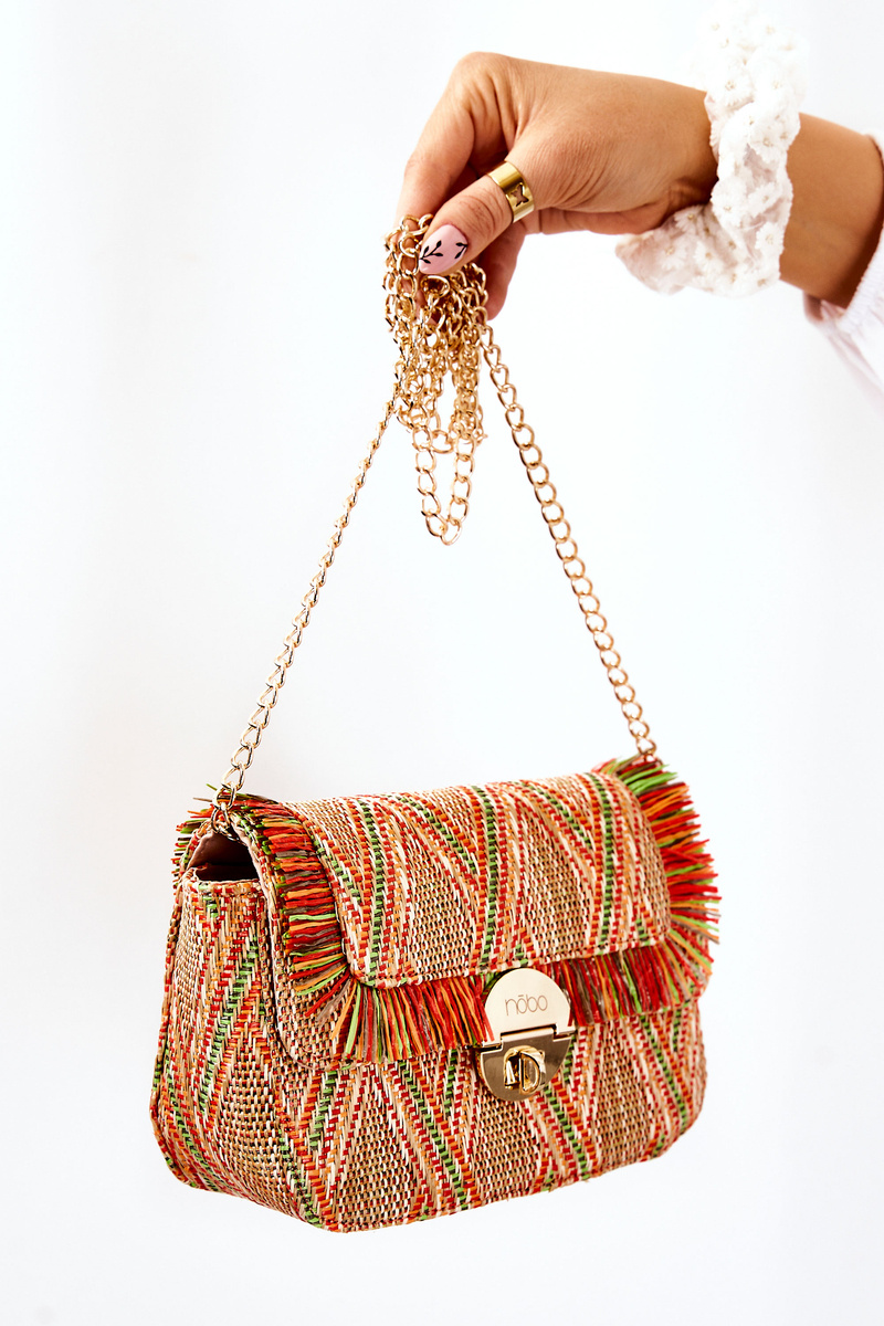 A wonderful Nobo handbag made of plastic. The flap is closed with a rotary clasp with the brand logo. The bag has a non-detachable, non-adjustable chain. Stiffened model. Inside there is a pocket closed with a zipper. This model will be a great addition to many styles. The purse will accommodate the most necessary things such as keys, phone or wallet.