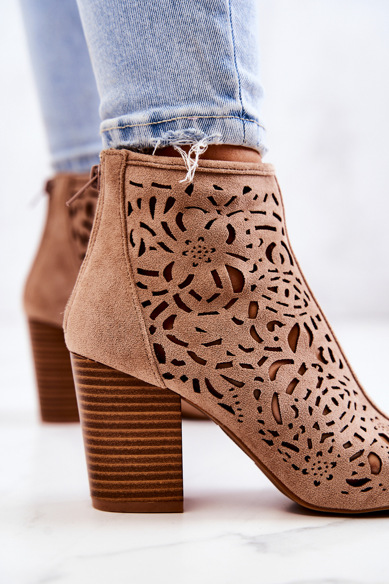 Boots are an inseparable element of women's stylizations. Made of suede eco leather. Classic boots with open fingers are fastened with a zipper at the back of the upper. The heel in the form of a post will make your leg look slender. The openwork pattern will make the shoes look wonderful on the leg! Be sure to also check out our other collection of boots! When choosing a size, please use the size chart.