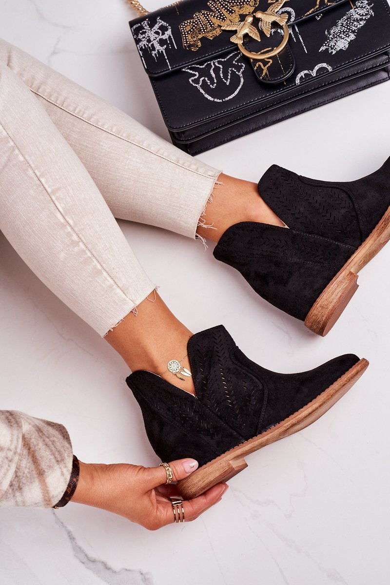 Spring openwork boots on a hidden wedge heel. The shoes are made of eco suede. The boots are very comfortable thanks to the soft natural leather insole. Be sure to check out our entire collection of women's boots! When choosing a size, please use the size chart.
