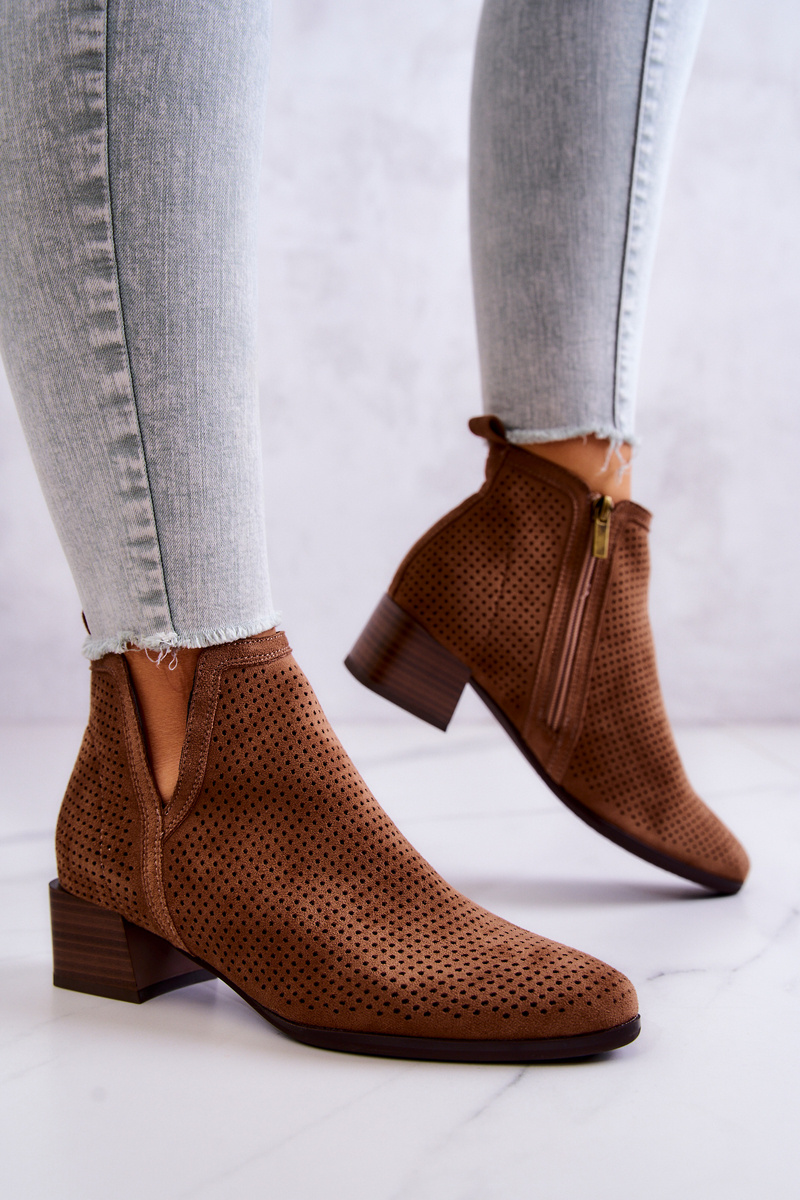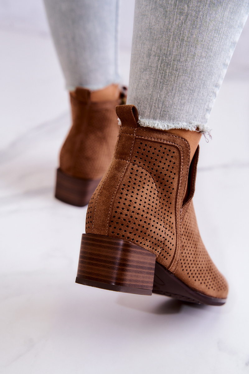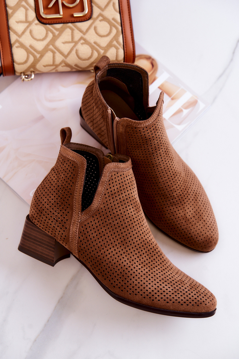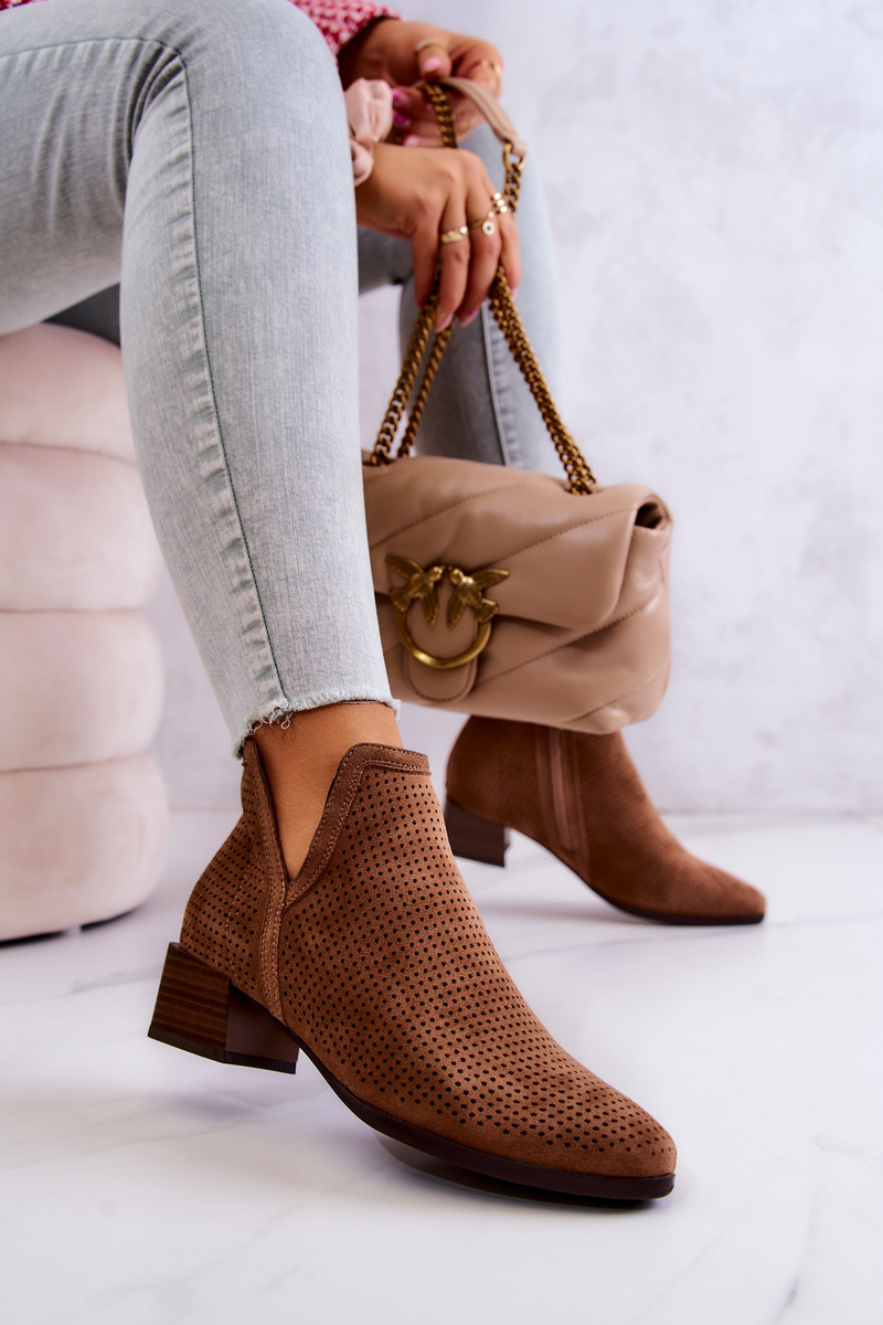 Openwork Suede Booties With A Cut Brown Carine