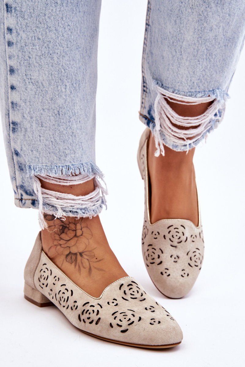 Openwork Women's Loafers Sergio Leone BL627 Beige