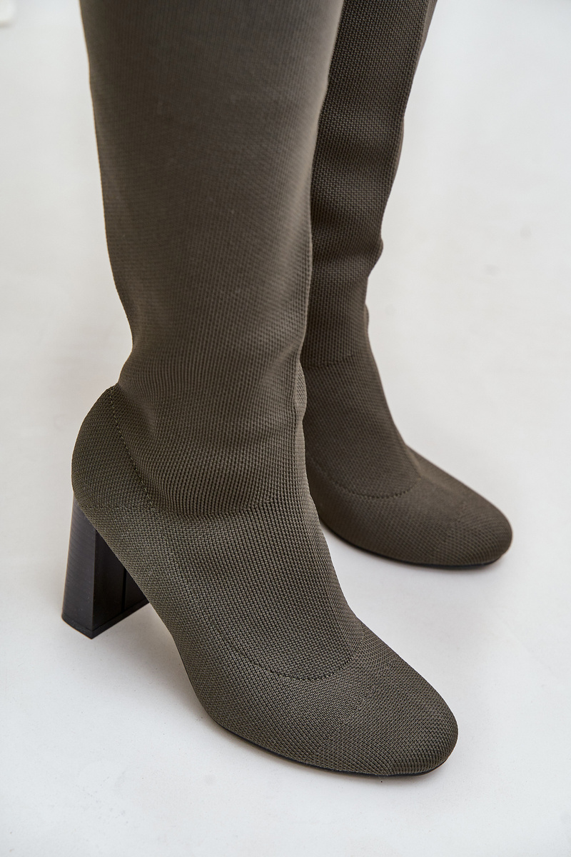 Over-the-knee Sock Boots On A Heel Dark Green Esanira