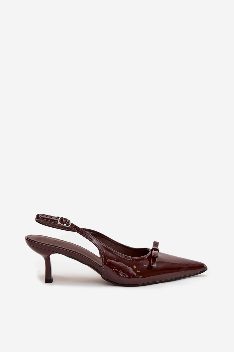 Elegant women's pumps made from eco-leather are a classic in a feminine style. A slender heel and pointed toes beautifully elongate the legs, and the bow at the front adds a subtle charm to the shoes. The model is fastened with a buckle and an adjustable strap, ensuring a good fit and comfort. Perfect for both elegant outfits and special occasions. When choosing your size, please refer to the size chart. When choosing a size, please refer to the size chart.