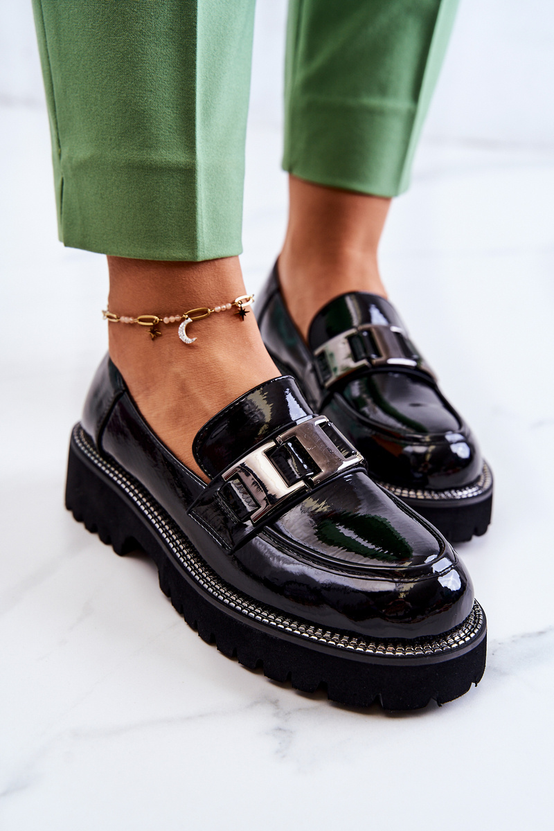Lovely, made of eco leather loafer-style shoes! This cut will be perfect for the spring and autumn season. The upper is ankle-length, with a stripe on the front decorated with a metal element. Rounded nose. The sole is made of plastic with a large tread. A flat heel will ensure stability at every step. The soft, comfortable insole is made of natural leather. This model is perfect for both casual and more elegant outfits! When choosing a size, please use the size chart.
