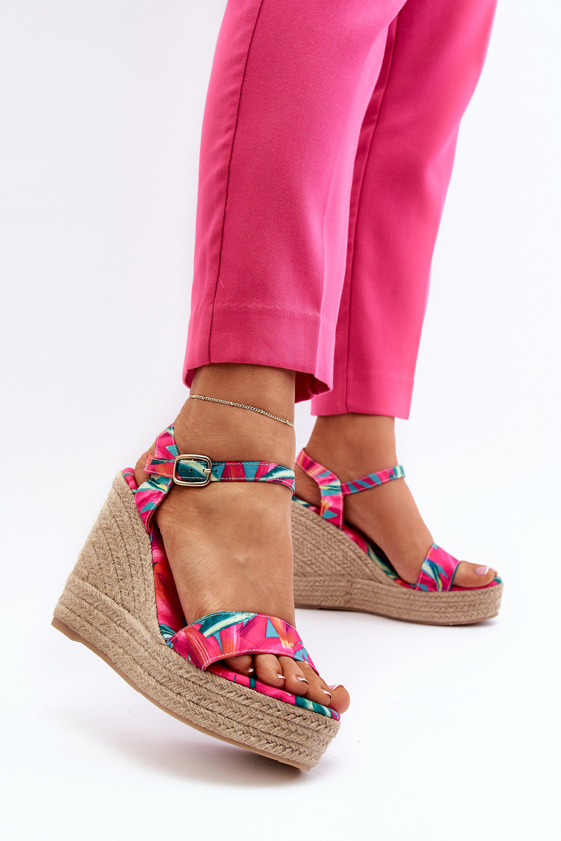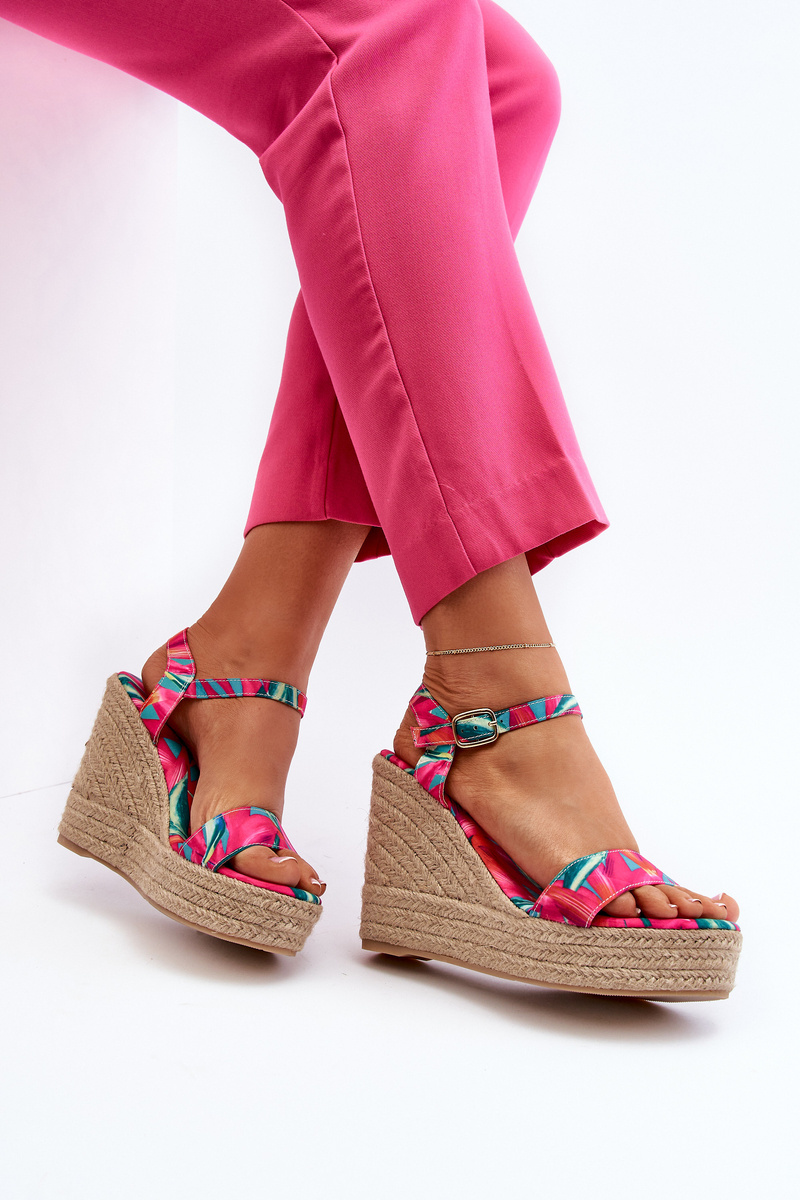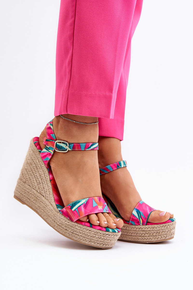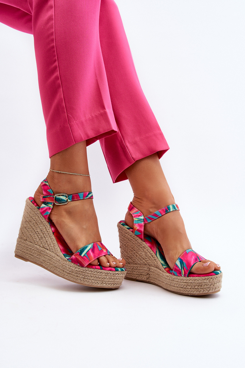 Patterned Wedge Sandals in Fuchsia Anihazra