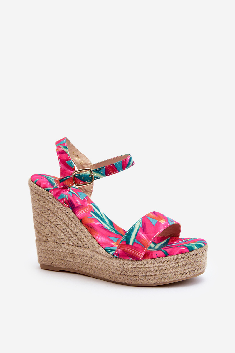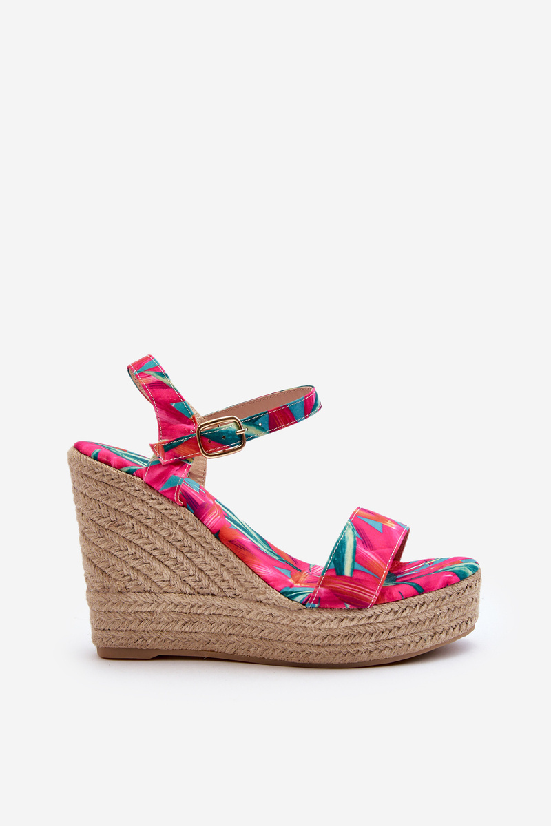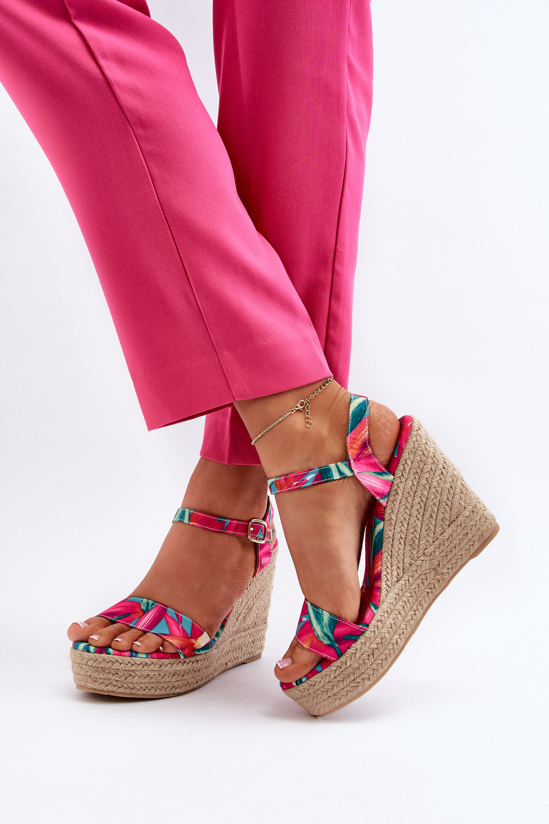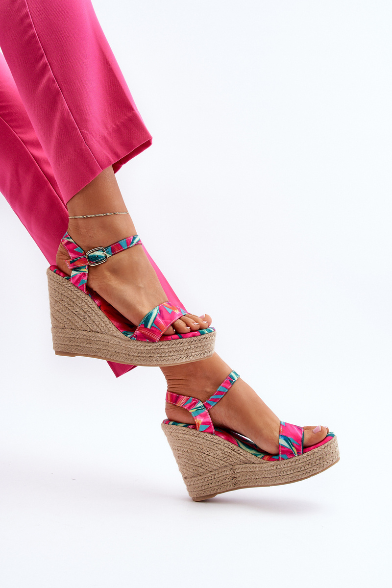 Patterned Wedge Sandals in Fuchsia Anihazra