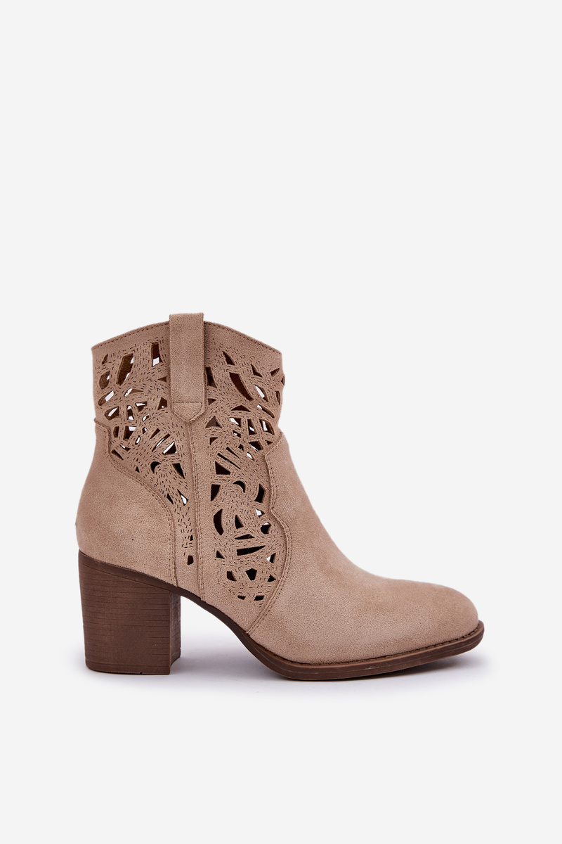 Perforated Ankle Boots On Block Heels Beige Nurissa