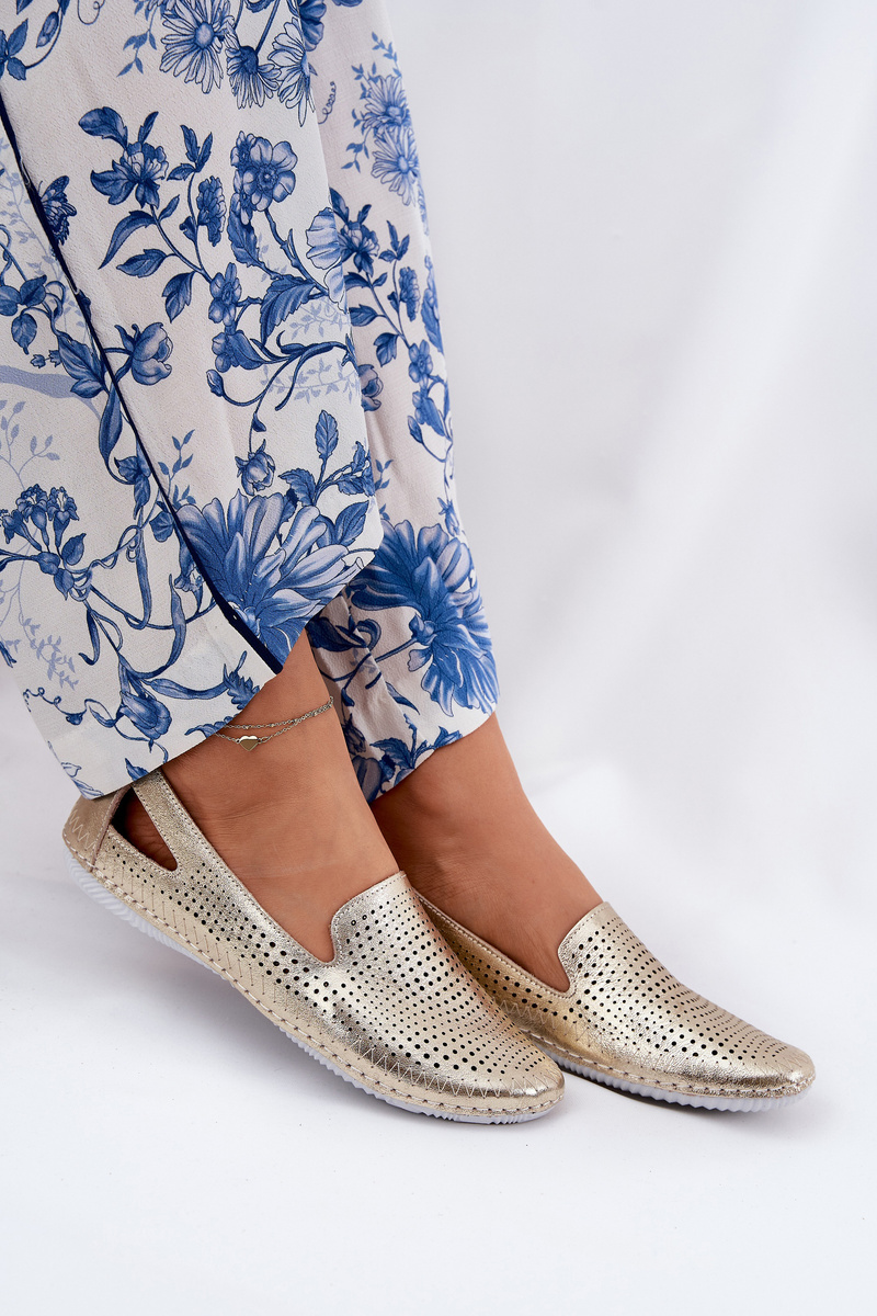 Perforated Ballerinas Made Of Natural Leather Artiker 56C2694 Gold