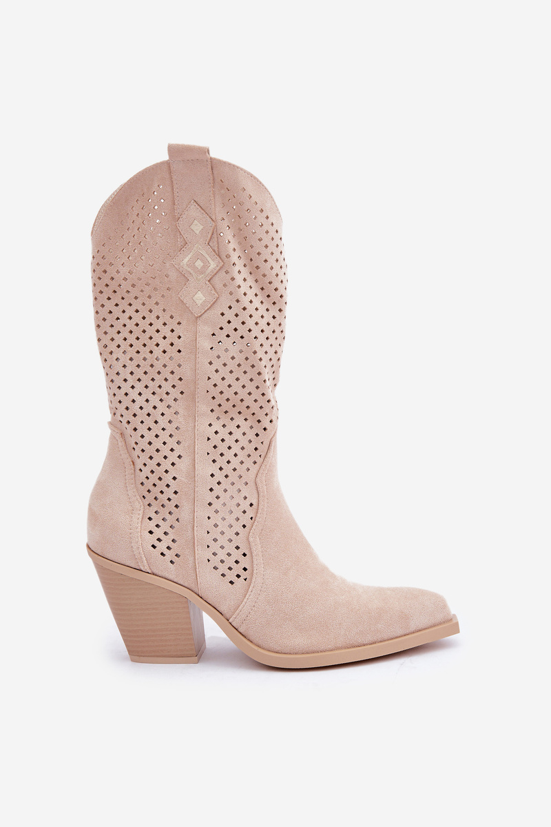 Perforated Cowboy Boots On A Heel Light Beige Salive