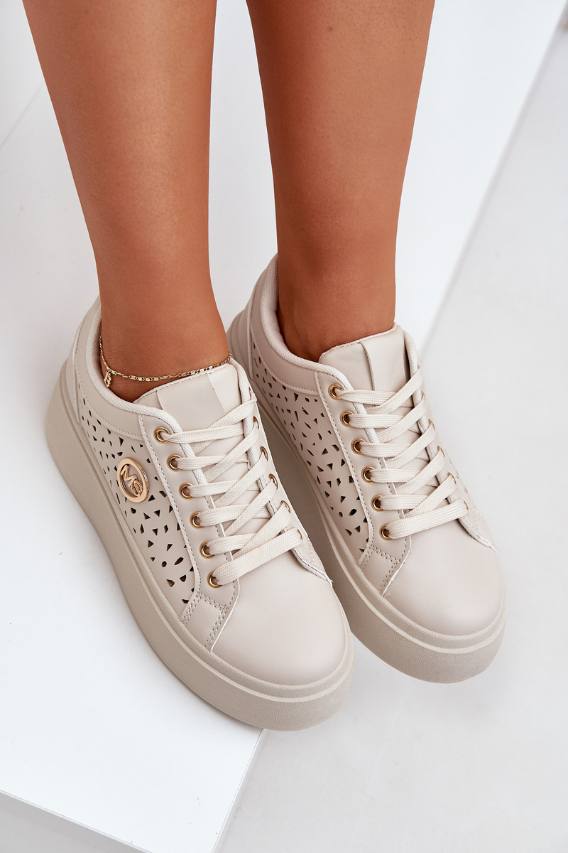 Perforated Sneakers With Gold Detail Beige Cassildi