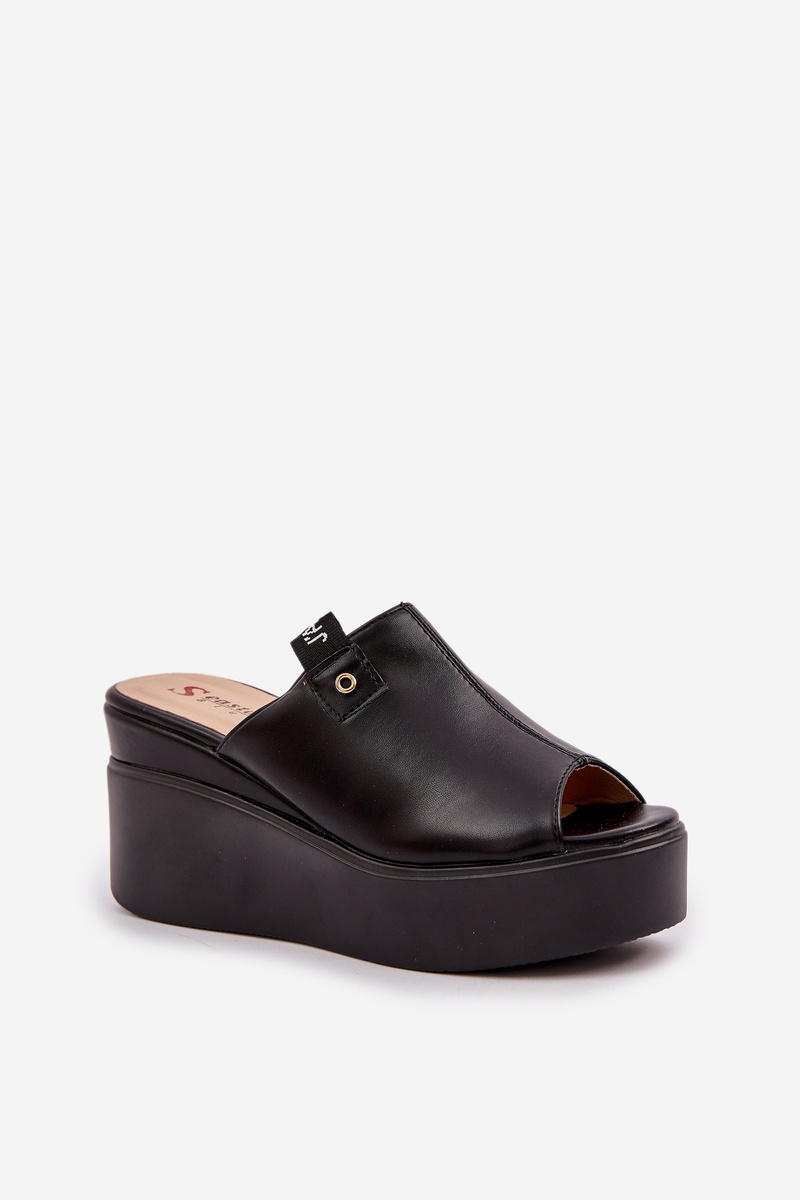 Platform And Wedge Sandals Eco Leather Black Eridoria