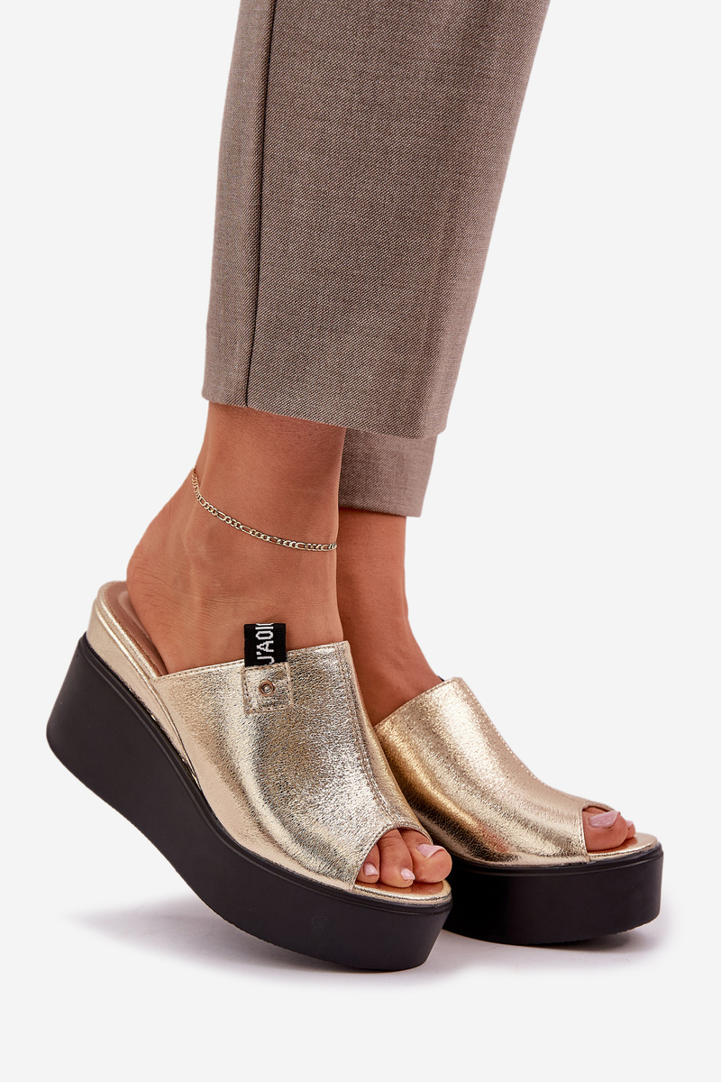 Platform And Wedge Sandals Eco Leather Gold Eridoria