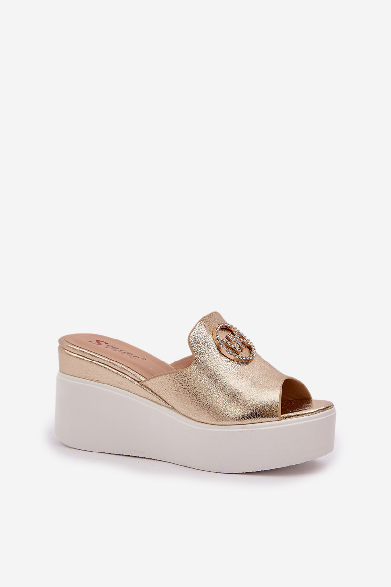 Platform And Wedge Sandals With Decoration Gold Nanessia