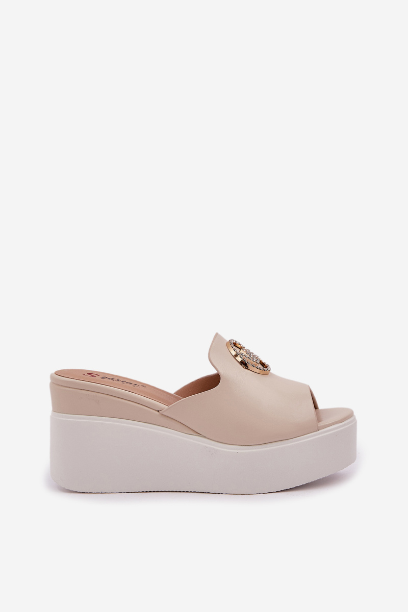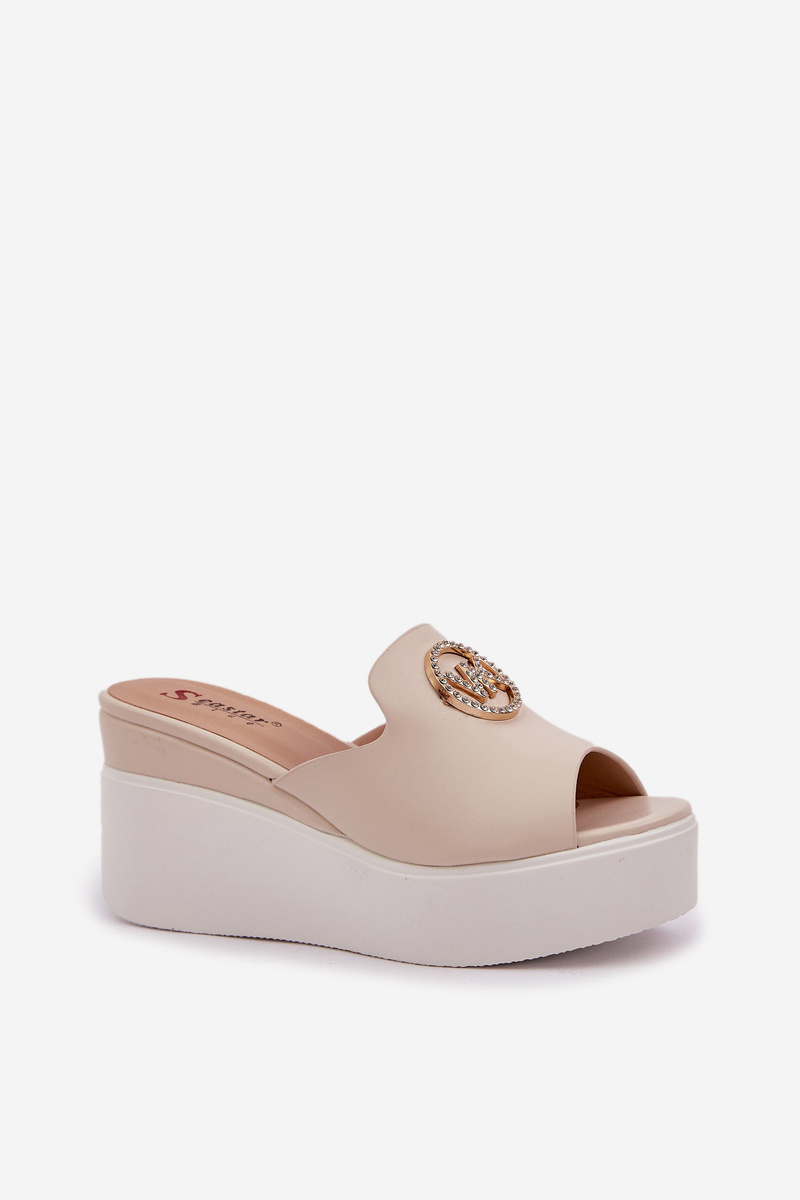 Platform And Wedge Sandals With Decoration Light Beige Nanessia