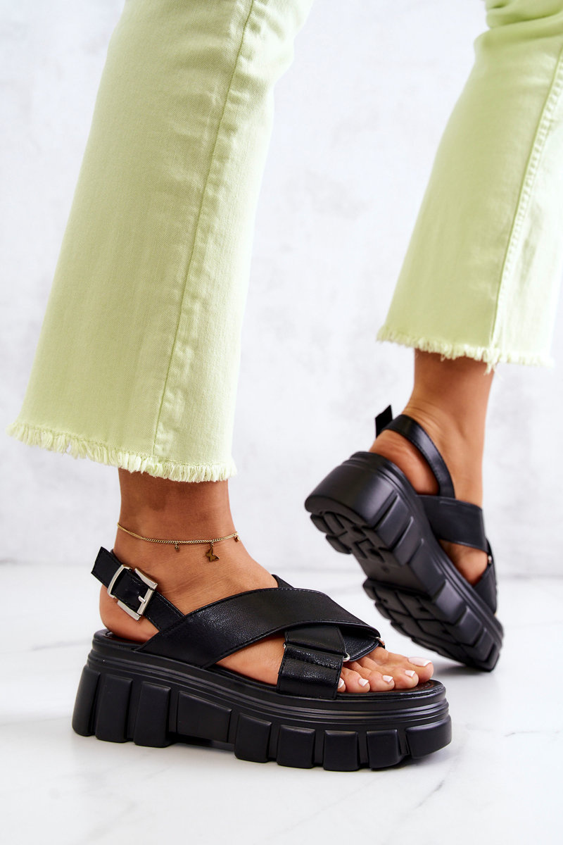 Sandals on a massive platform, making them more comfortable than classic wedges. Perfect for hot days. They are very comfortable to use. They have wide stripes made of eco leather, while the sole is made of plastic. Equipped with an adjustable belt fastened with a buckle. A unique cut that will perfectly match the width of the foot. When choosing a size, please follow the size chart.