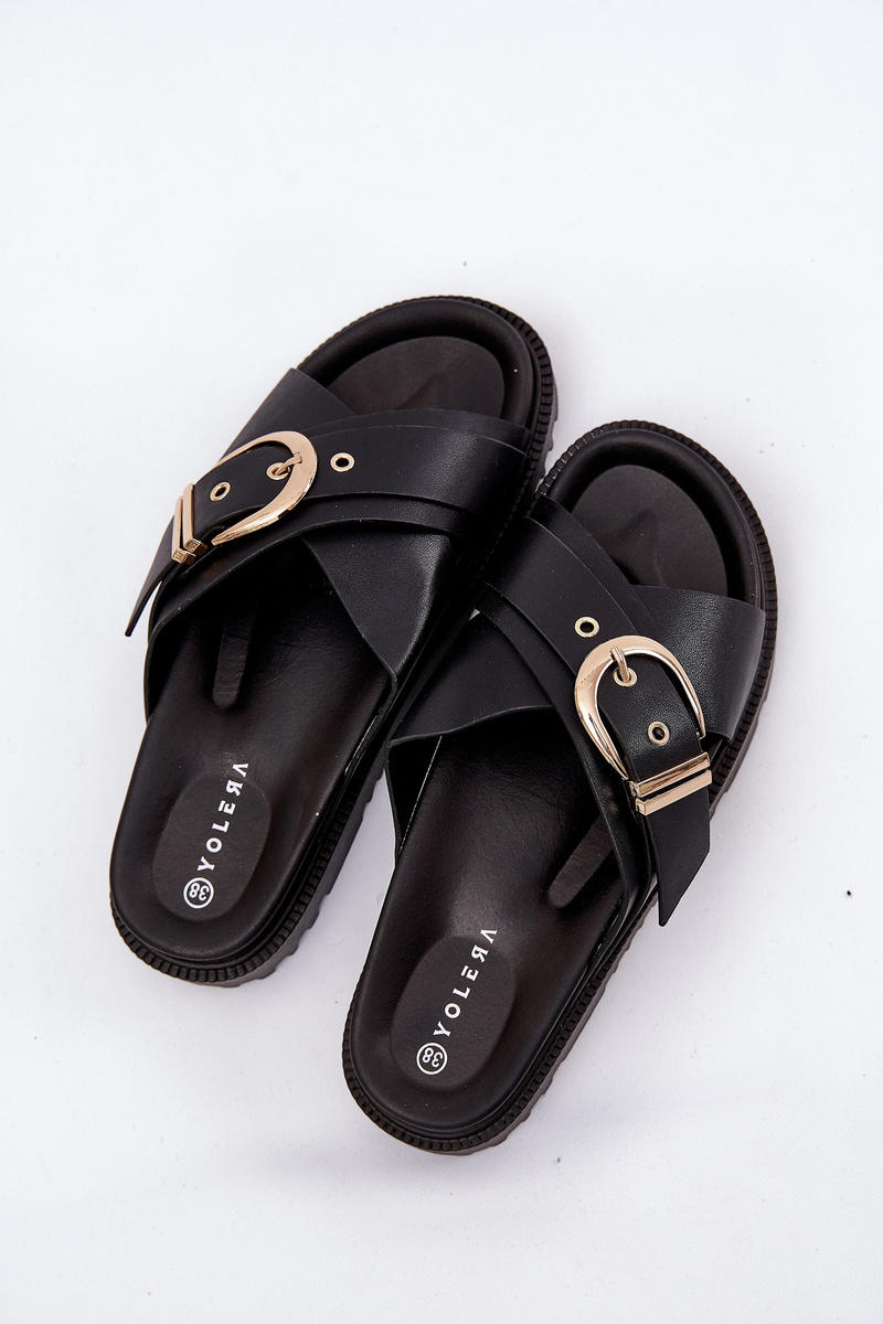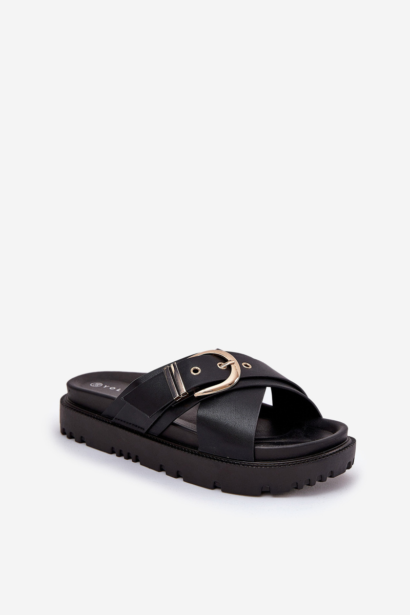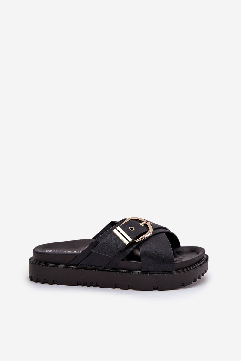 Platform sandals made of eco leather are a fashionable and comfortable option for warm days. At the front, there are two wide, crossing straps that add a modern character. A large buckle on the strap catches the eye, giving a distinctive style. These sandals combine comfort with elegant design, perfectly matching summer outfits. When choosing a size, please refer to the size chart.