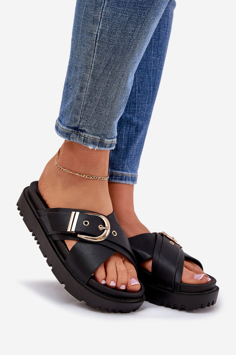 Platform Sandals With Buckle Black Honavia