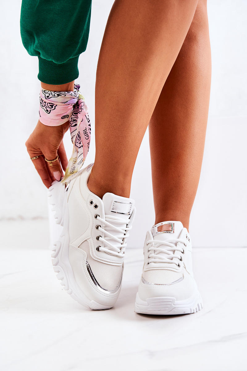 Sneakers are made of eco leather and textile material. A soft, material insole will take care of your comfort. The shoes have a classic bond and a massive sole that protects against the cold ground. There are mirror elements on the front and back of the footwear. When choosing a size, please use the size chart.