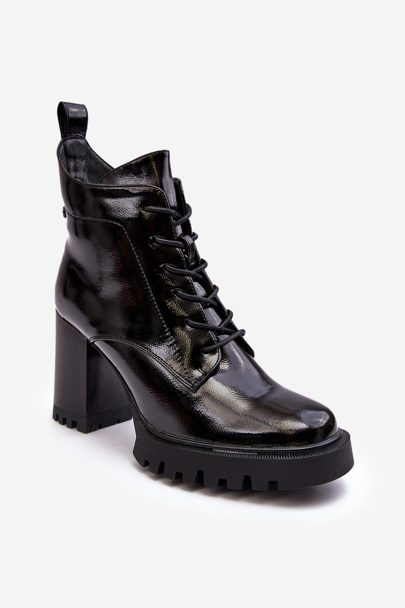 Women's boots are mounted on a stiletto heel. Made of high quality ecological leather. The boots have a zipper on the side and laces that will allow the footwear to be tailored to the thickness of the leg. The toe is stiffened. The nose is rounded. Inside insulated with shoemaker's wadding. When choosing a size, please refer to the size chart.