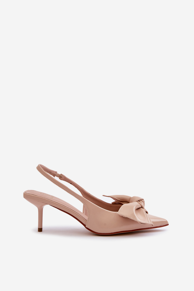 Elegant women's stilettos made of eco leather. This model features pointed toes. The front of the shoe is adorned with an eye-catching bow that highlights the unique character of the stilettos. Perfect for evening outfits! When choosing a size, please refer to the size chart.
