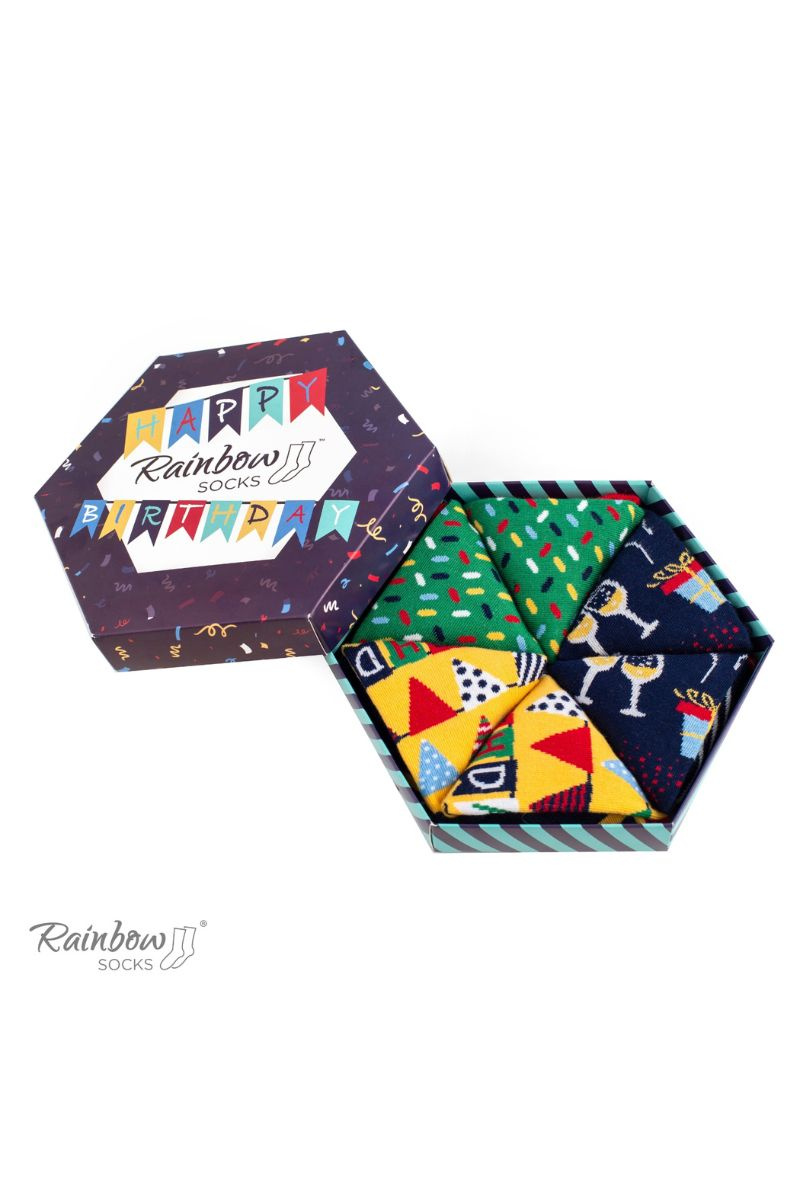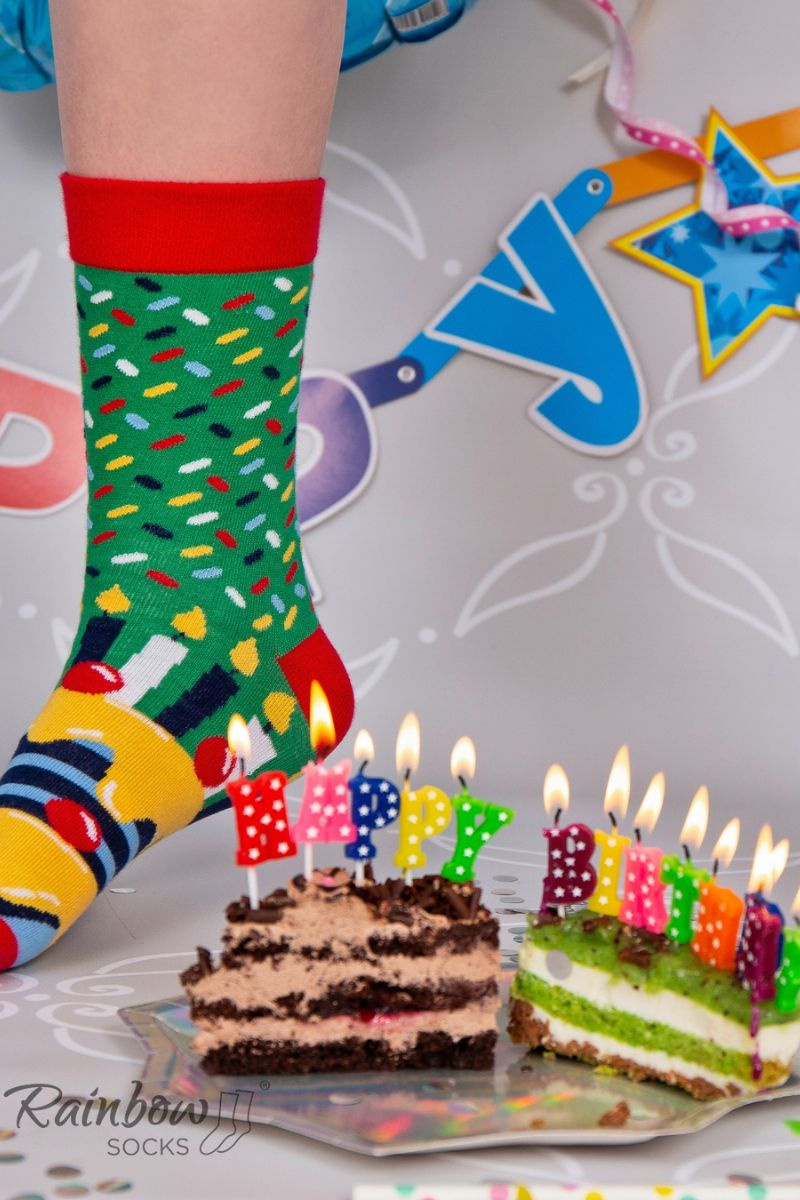 This set of 3 cotton socks from Rainbow Socks was designed for a special occasion that comes only once a year - birthday! Whether it's 50 or 21, our socks will help you prepare this day down to the smallest detail! They will also be a great addition to the outfit of a guest who is going to a birthday party and needs accessories appropriate for this celebration.