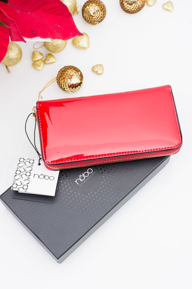 The complement to any woman's styling is not only a handbag and shoes but also a well-chosen wallet. Wallets of the renowned company NOBO are appreciated by all women. The presented model is finished with high quality varnished ecological leather. The wallet is fastened with a gold zipper. Inside one compartment there are 8 card pockets, 1 large zippered compartment for coins and 2 additional compartments for other documents.