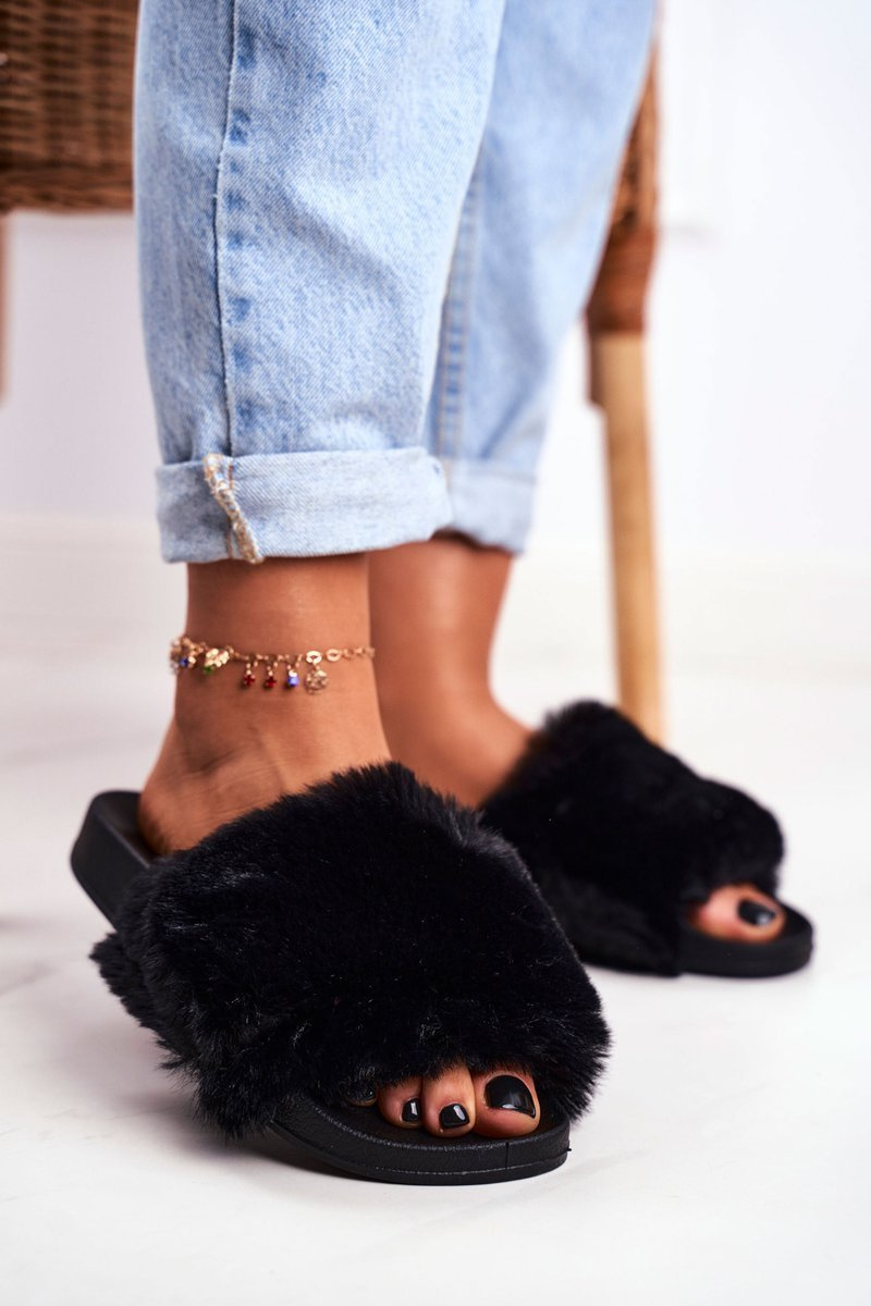 Beautiful women's slippers with ecological fur. The shoes are made of flexible, rubber material. They have a delicately profiled insert. When choosing a size, please use the size chart.