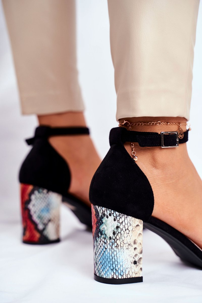 Sandals On A Block Heel Sergio Leone SK873 Black Snake Pattern