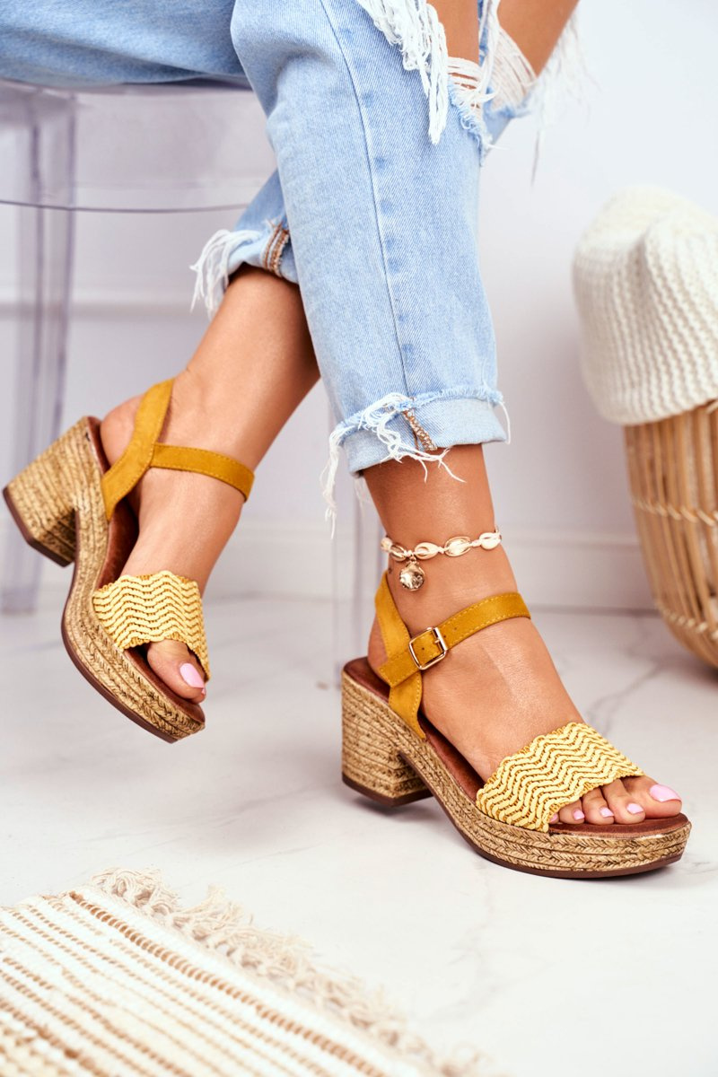 Delicate and feminine platform sandals. The shoes are made of eco leather, the soft insole will ensure comfort. The platform and the post are decorated with an imitation of braid. When choosing a size, please use the size chart.