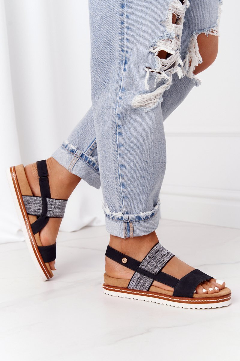 Sandals With Silver Drawstring Black Almeria