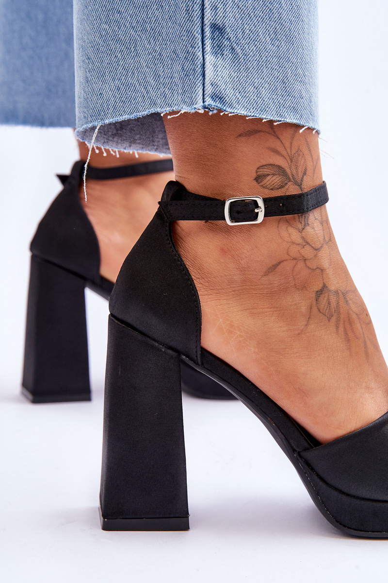 Satin Sandals On Chunky Heels Black Eternity
