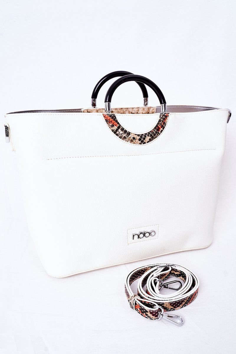 NOBO is a brand that is distinguished by its original style and high quality of products. The fashionable handbag has two compartments and four internal pockets for the phone and small items. The interior of the bag is beige with the NOBO brand logo. The bag is made of eco leather, it has a detachable, adjustable strap.