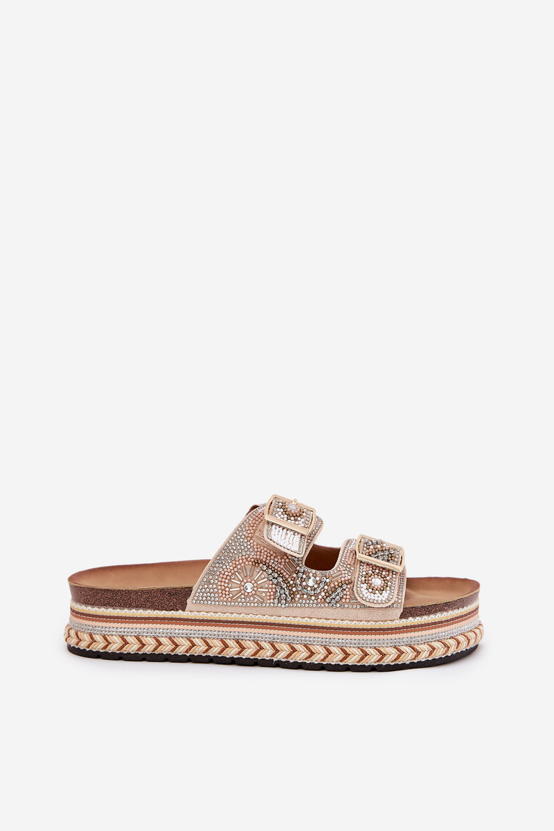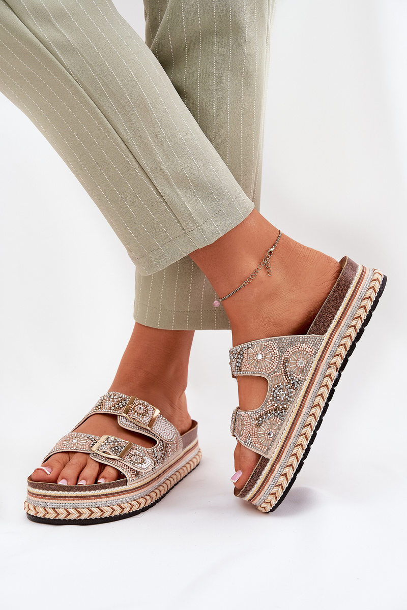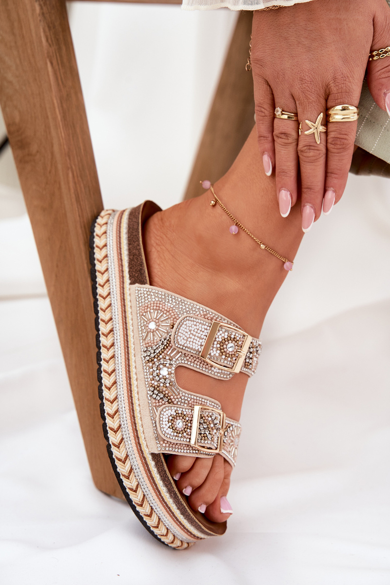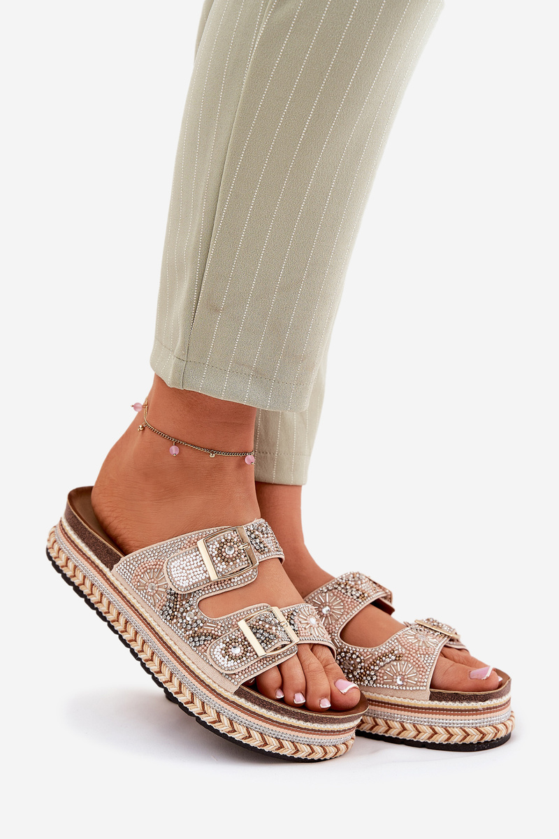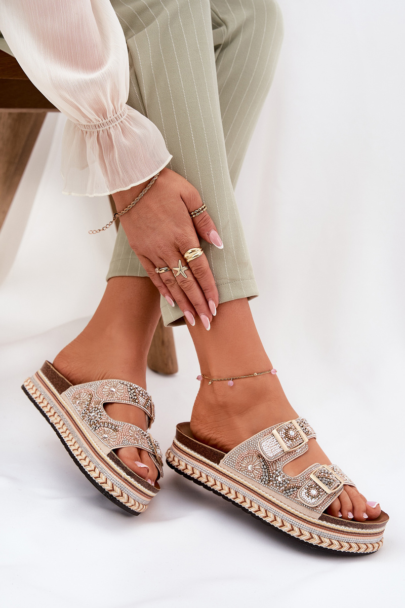 Slides With Decoration And Buckles On The Platform Golden Mellene