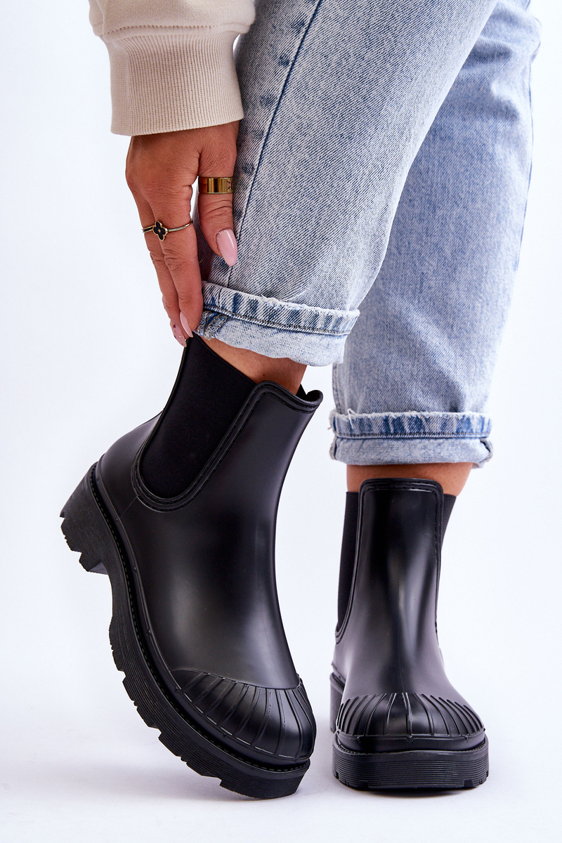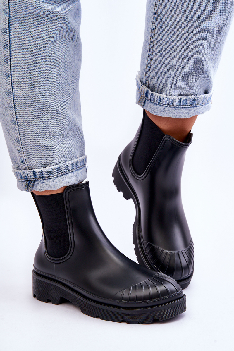 Boots are made of rubber material. They have a decoration on the nose. Inside the footwear, the insole is made of fabric. A flat heel and a low platform will ensure stability at every step. A great model for the spring-autumn season. You should definitely have these boots in your wardrobe! When choosing a size, please refer to the size chart.