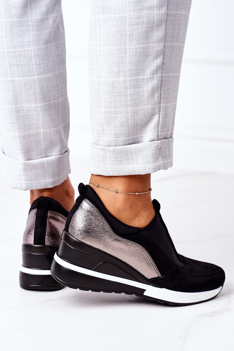 Slip-On Wedge Sneakers Vinceza 10593 Black-Silver