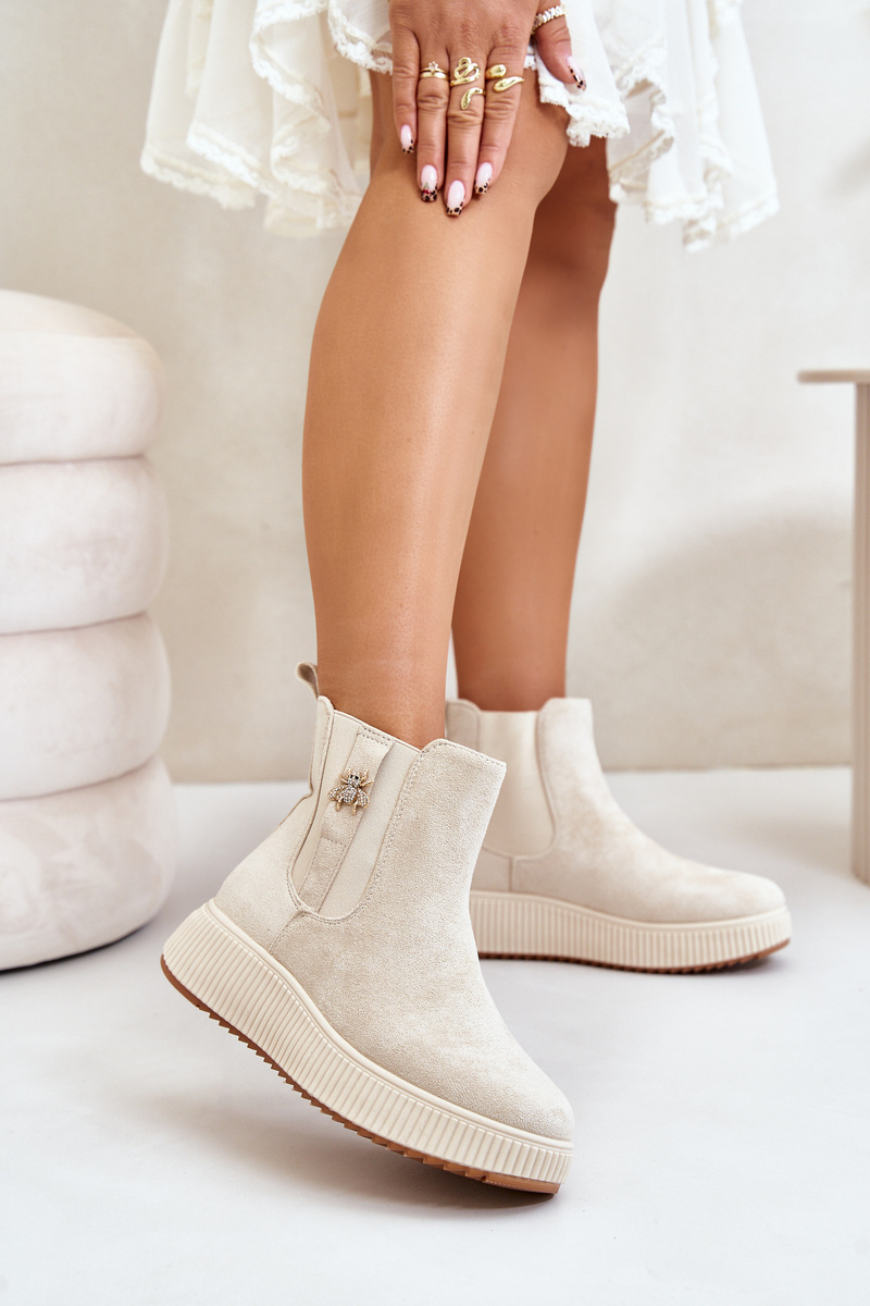 Slip On Women's Ankle Boots On Platform With Decoration Eco Suede Light Beige Ciatheia