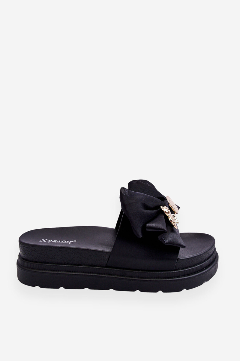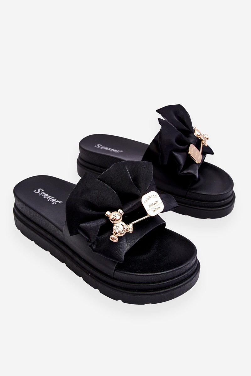 Slippers With A Bow And A Teddy Bear Black Suzy