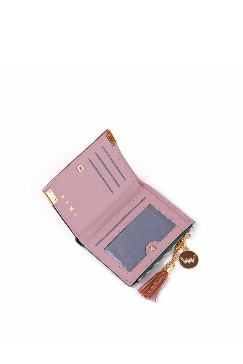 A small wallet is useful for everyone! It is practical and above all stunning in its appearance! The wallet is made of eco-leather with a snap closure and a zip fastener. It has space for notes, photos, business cards or credit cards. There is a tassel and emblem at the zipper, and a pocket for storing coins.