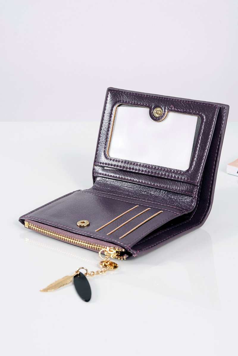 Small Women's Plum Wallet Gold Feather Wallet