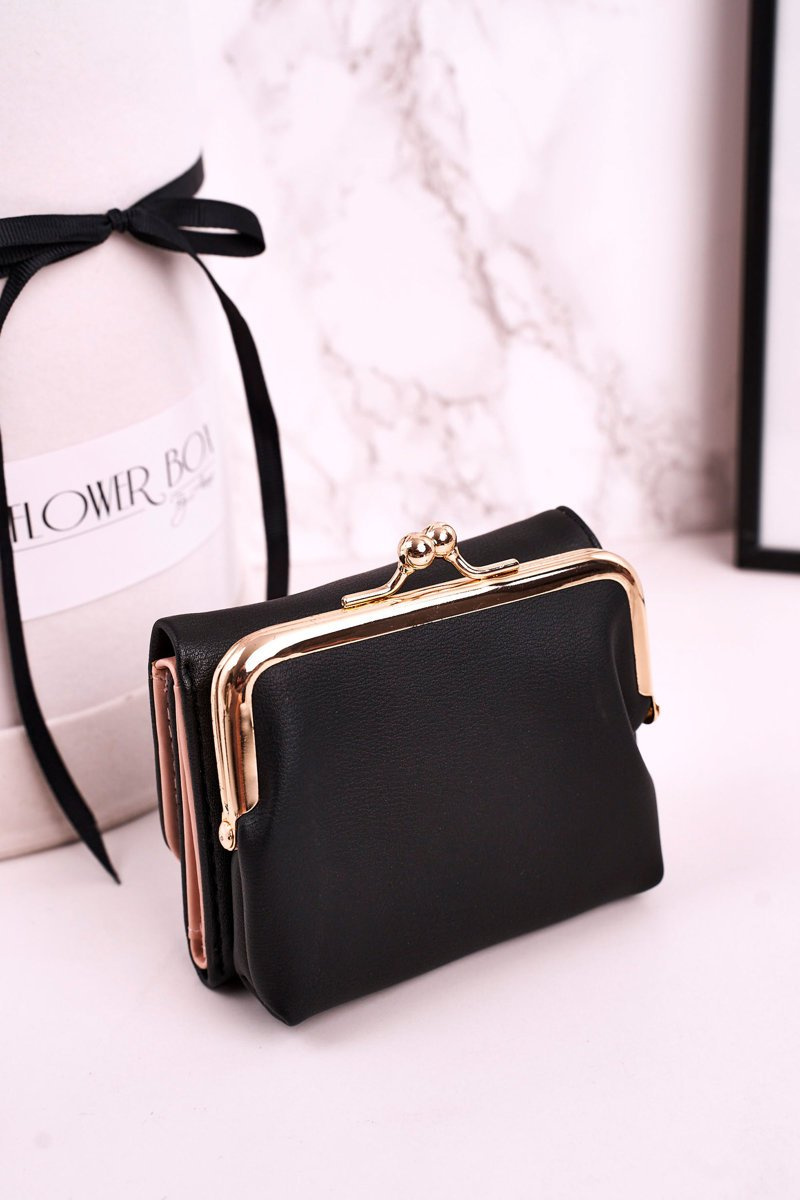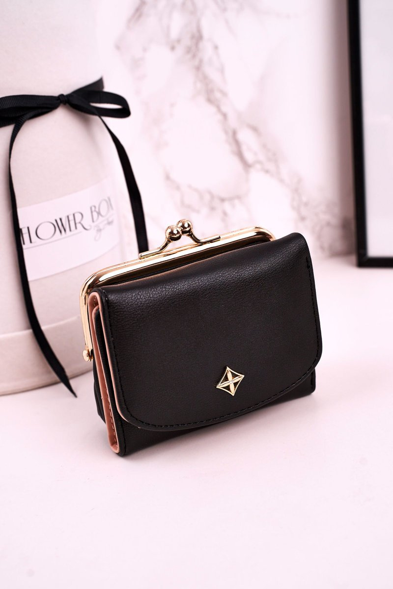 A small women's wallet fastened with a hook. The wallet can accommodate coins, banknotes and payment cards. Made of eco leather.