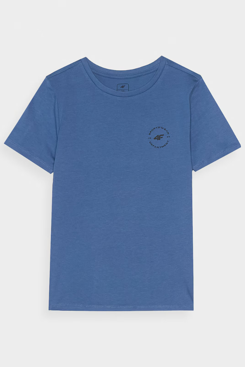 The boys' plain T-shirt is perfect as an element of both casual and sports styles for everyday wear. It features a regular cut that comfortably adapts to the silhouette and a standard length that reaches the hip line. The single jersey knit with a one-sided smooth surface makes the shirt elastic and comfortable to wear. The boys' plain T-shirt is soft, lightweight, and breathable. It is ideal for wearing especially in the summer or as an undershirt under a sweatshirt or shirt. The 4F boys' T-shirt is made of 100% cotton, making it soft, durable, and pleasant to the touch. The round neckline is finished with a light ribbing. The front features the visible inscription "4F Sportswear Department".