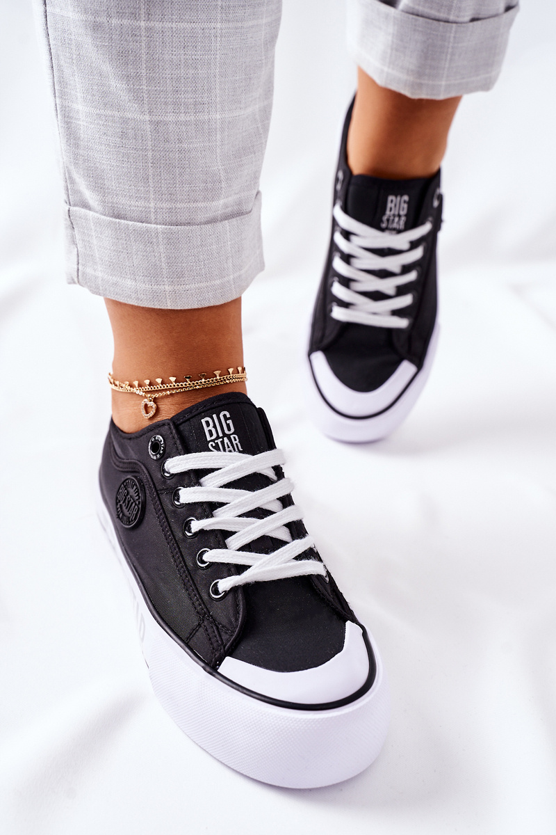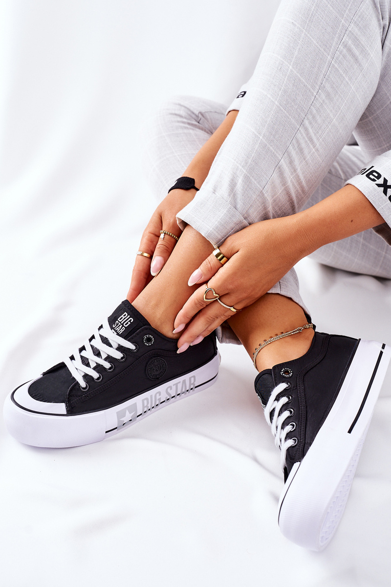 Women's sneakers on the platform of the Polish brand BIG STAR. The iconic sneakers fit many styles. The shoes fit the shape of the foot well, have a soft, material insert and a non-slip sole. Be sure to check out our entire collection of BIG STAR shoes. When choosing a size, please use the size chart.