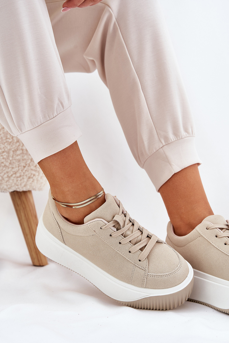 Women's sports shoes made of eco suede. Set on a massive platform. The rounded toes provide comfort, and the soft insole further enhances wearing comfort. Perfect for everyday styling, these shoes combine a modern look with functionality, making them an excellent choice for any occasion. When choosing a size, please refer to the size chart.
