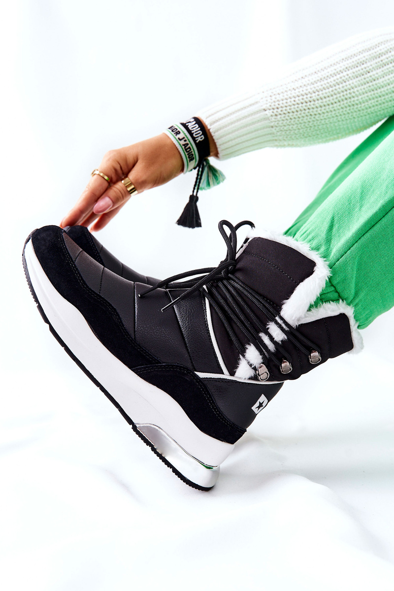 Exceptional snow boots from Big Star brand! Shoes inside are incredibly nice to the touch, thanks to the use of insulation in the form of fur. The insole is made of material. The outer part of the shoe is made of textile material and suede leather. The shoes can be perfectly adjusted to the leg, thanks to the binding. There is a Big Star logo on the heel. You will not be afraid of any weather in these snow boots! Follow the size chart when choosing the size.