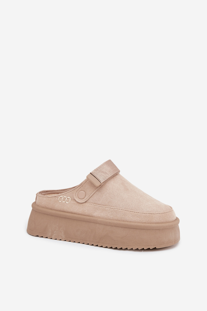 Warm and comfortable women's snow boots made of soft eco suede are a reliable choice for winter days. Positioned on a chunky platform, they effectively insulate the feet from cold ground, providing comfort even during long walks. The interior is lined with soft fur that envelops the foot with pleasant warmth and protects against frost. The model features a practical, movable Velcro strap – you can wear it both at the front and at the back of the shoe. Perfect footwear for everyday wear. When choosing a size, please refer to the size chart.