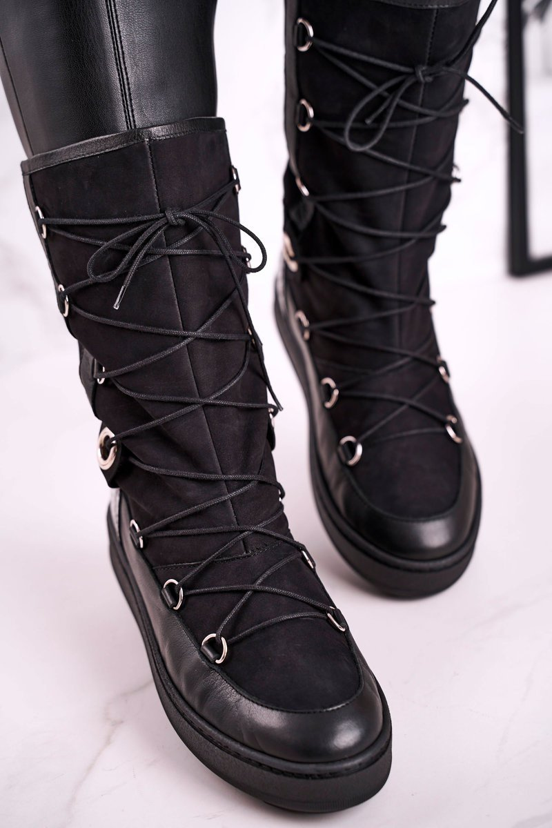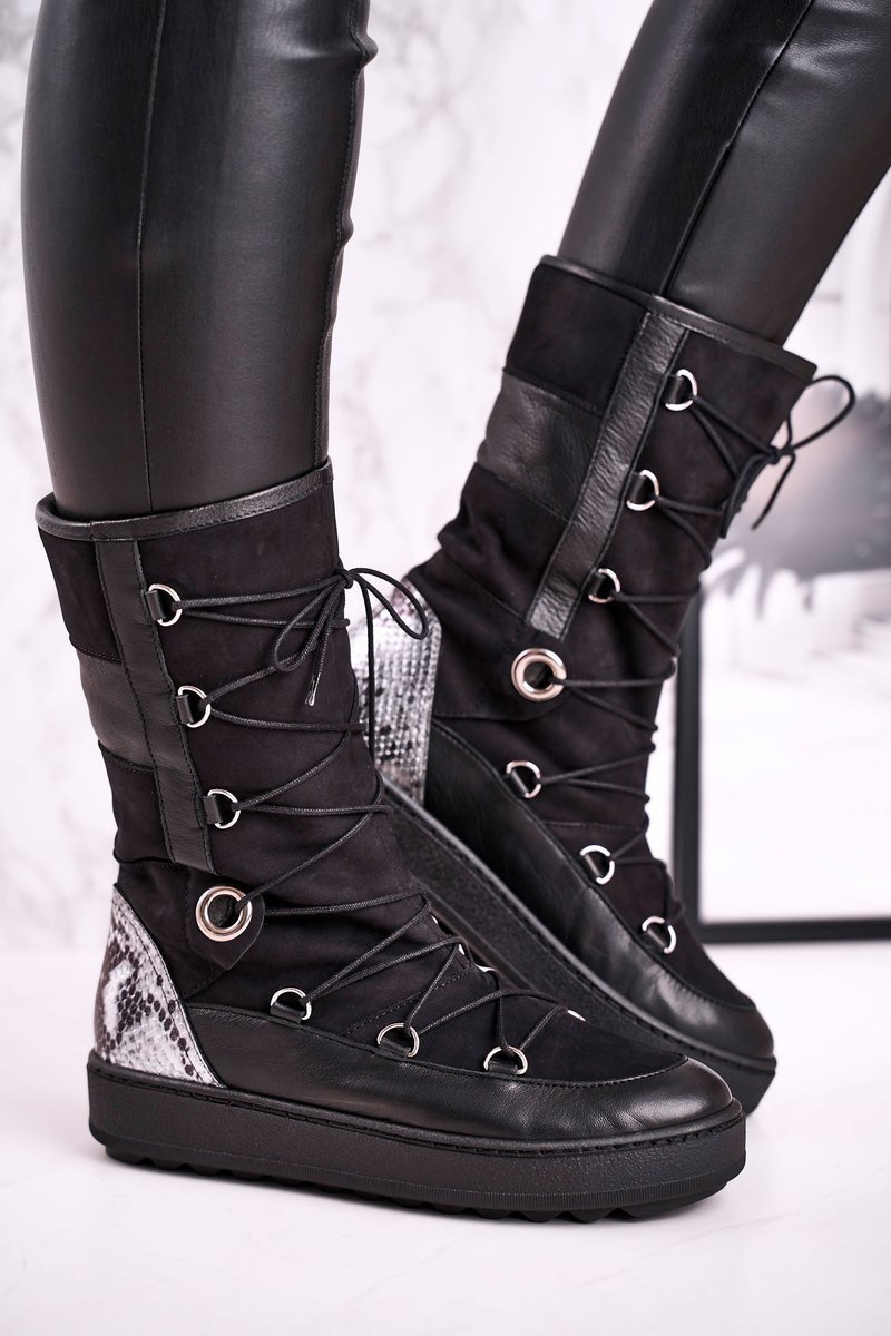 Snow Boots With Fur Suede Black Laura Messi 2054