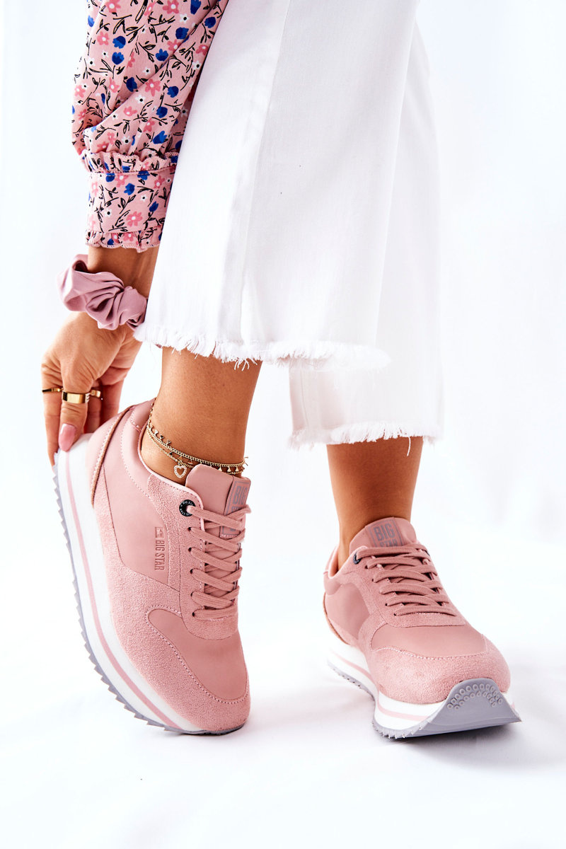 Women's sports shoes from the Polish brand Big Star. The upper is made of a combination of breathable fabric and eco leather. The shoes have a non-slip sole and a unique MEMORY FOAM SYSTEM insole. The insole remembers the shape of the foot, provides a perfect fit, absorbs shocks, is resistant to deformation and allows moisture evaporation and temperature regulation. Be sure to check out our entire collection of BIG STAR shoes. When choosing a size, please use the size chart.