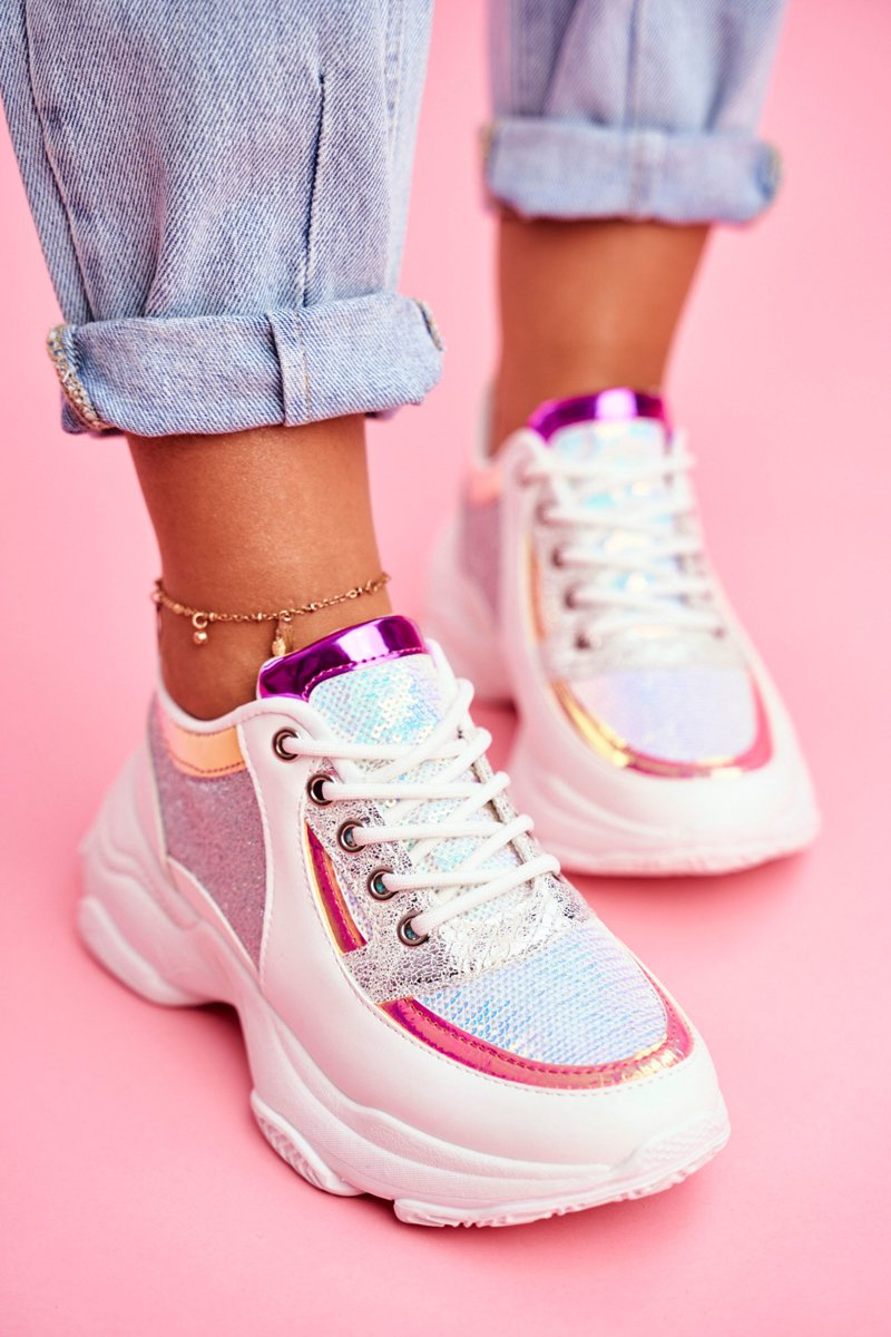 If you value comfort and convenience during your daily duties, be sure to check out our offer for sports shoes. Sneakers decorated with glitter and holographic inserts. A soft, ventilated insole will take care of our comfort. When choosing the size, please follow the size chart.