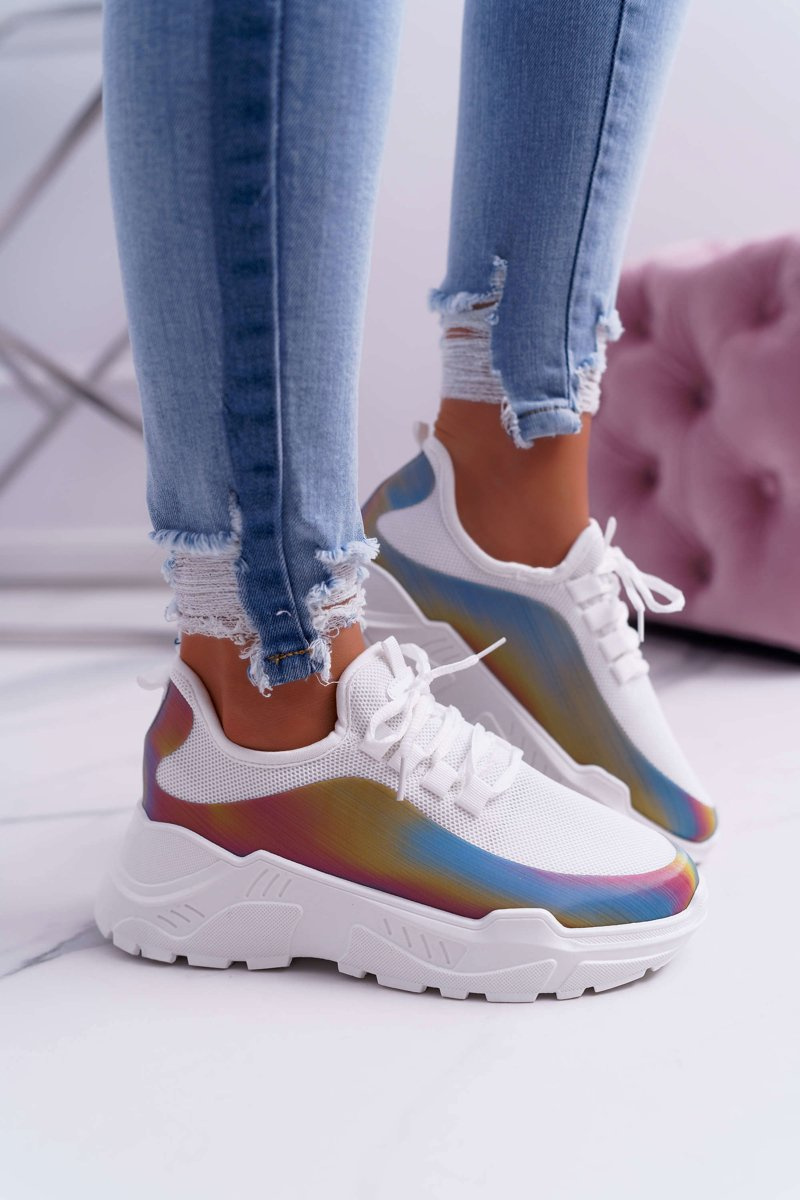 Sporty Women's Shoes Thick Soles Holographic White Party Up