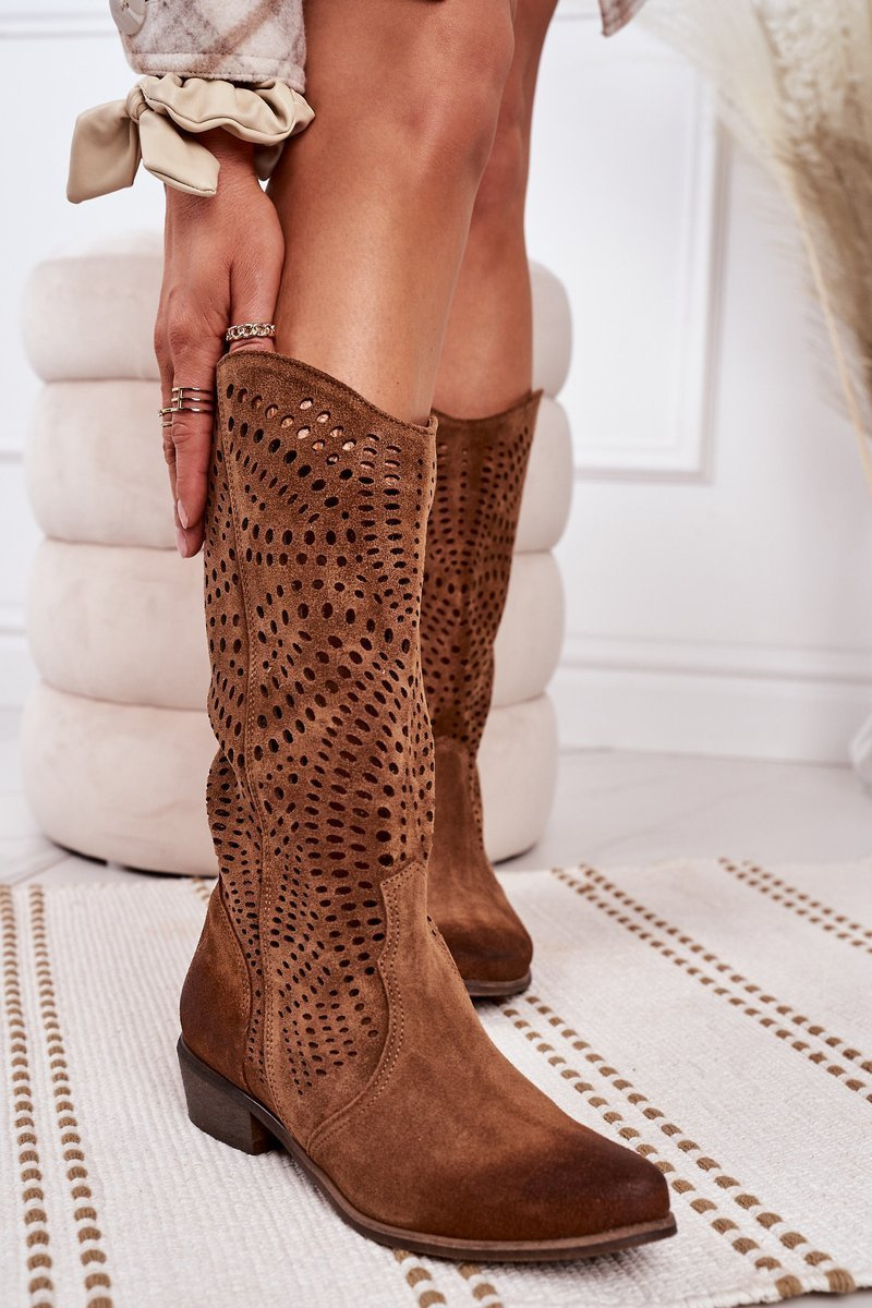 Spring Openwork Suede Boots Exquisite 1229 Cognac
